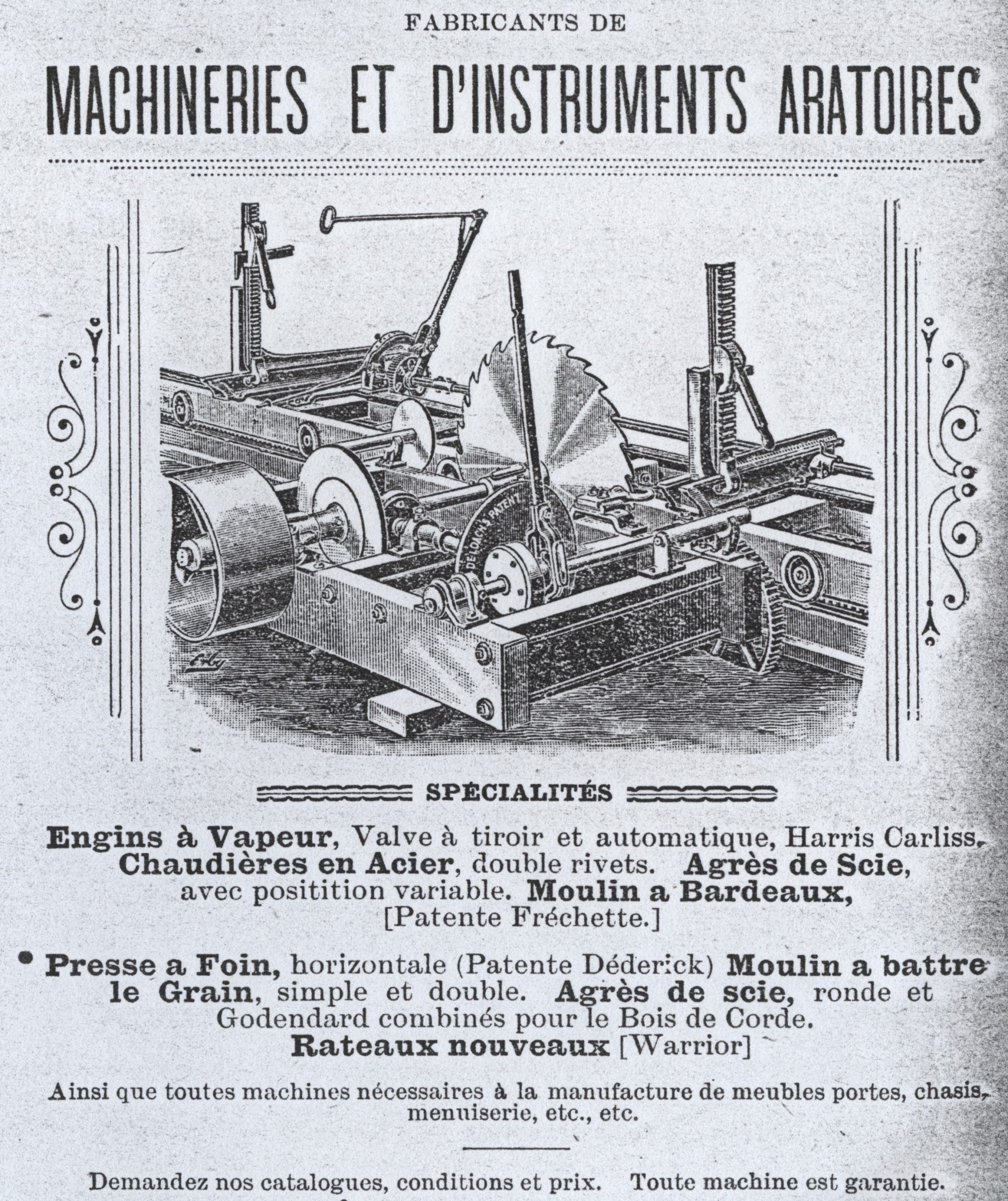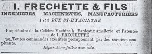 De 1875 à 1885, la fabrique des Fréchette est aux 1 et 3 rue Saint-Hyacinthe (maintenant Hôtel-Dieu) où ils confectionnent « moulins et machinerie ». Au fil des ans, les activités s’élargissent. Ainsi, en 1875, il s’agit d’une « Fabrique de moulins et machinerie »; en 1883, sous la dénomination Fréchette et Fils, on mentionne « machinistes »; alors qu’en 1885, les principaux responsables apparaissent comme « machinistes, ingénieurs, manufacturiers ».